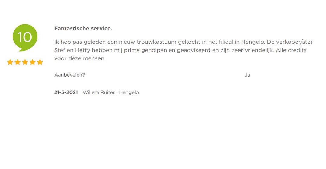 Ieder jaar helpen wij meer dan 3.000 mannen om hun perfecte trouwpak te vinden. Al meer dan 45 jaar draait ons bedrijf op de liefde voor ons product én betrokkenheid bij onze klanten. Ons motto is: weten dat het goed zit. Hierdoor durven we je te beloven dat de keuze voor een Jac Hensen trouwpak de juiste is.